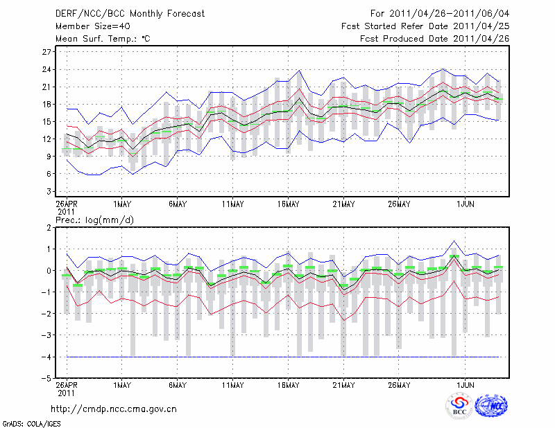 哈 尔 滨 (LAT:45.75 LON:126.77) 2011-04-26        预测