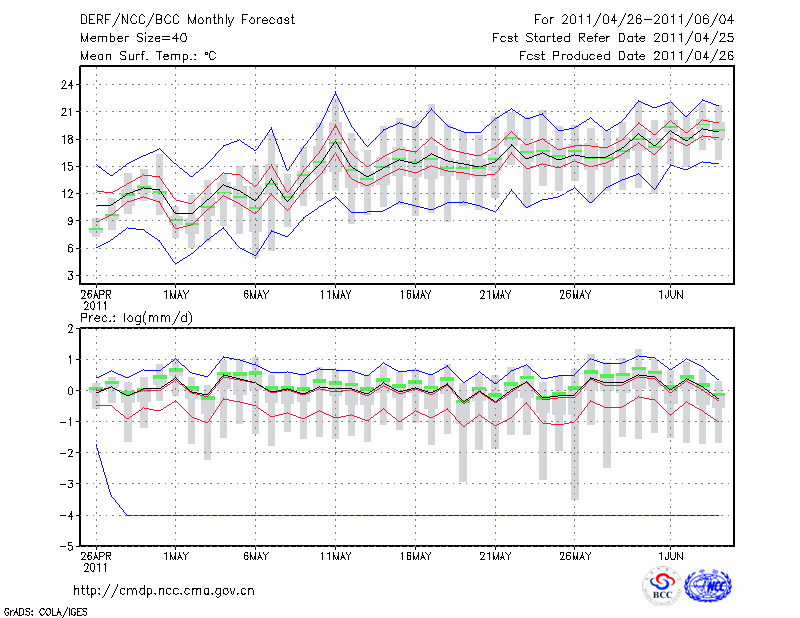 牡 丹 江 (LAT:44.57 LON:129.60) 2011-04-26        预测