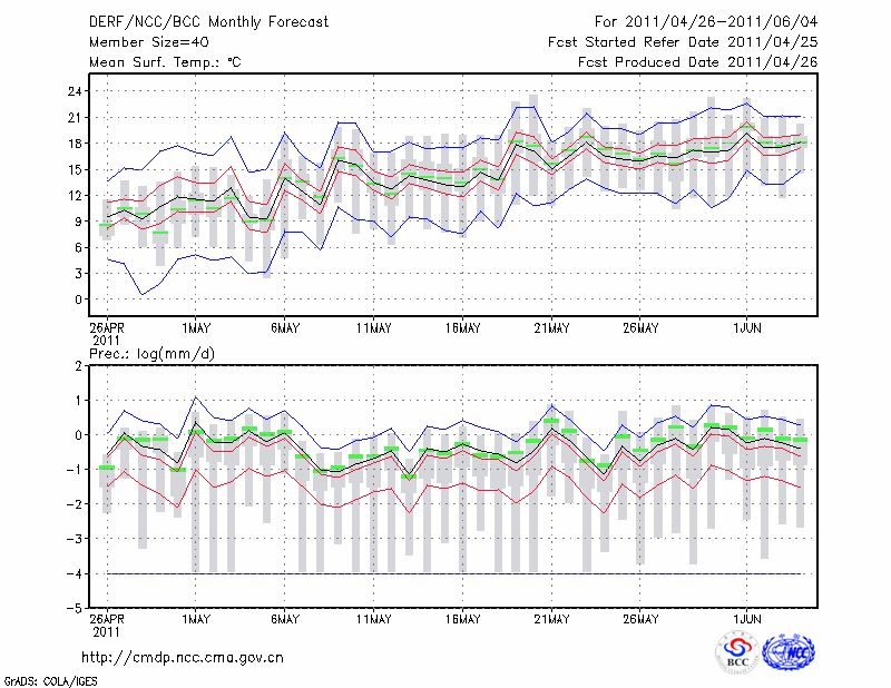 锡林浩特 (LAT:43.95 LON:116.07) 2011-04-26        预测