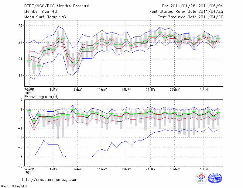 蒙 自 (LAT:23.38 LON:103.38) 2011-04-26        预测
