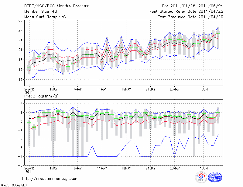 东 台 (LAT:32.87 LON:120.32) 2011-04-26        预测