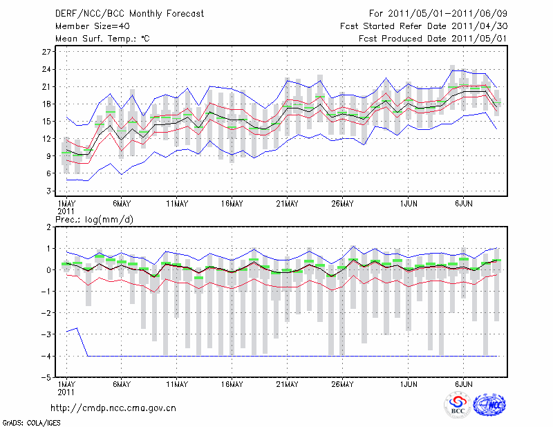 鸡 西 (LAT:45.28 LON:130.95) 2011-05-01        预测