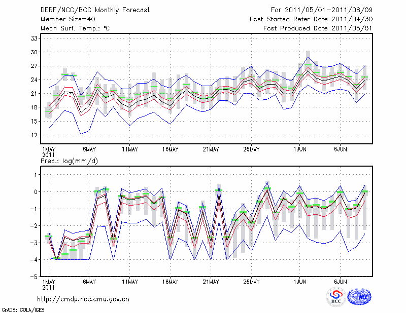 若 羌 (LAT:39.03 LON:88.17) 2011-05-01        预测