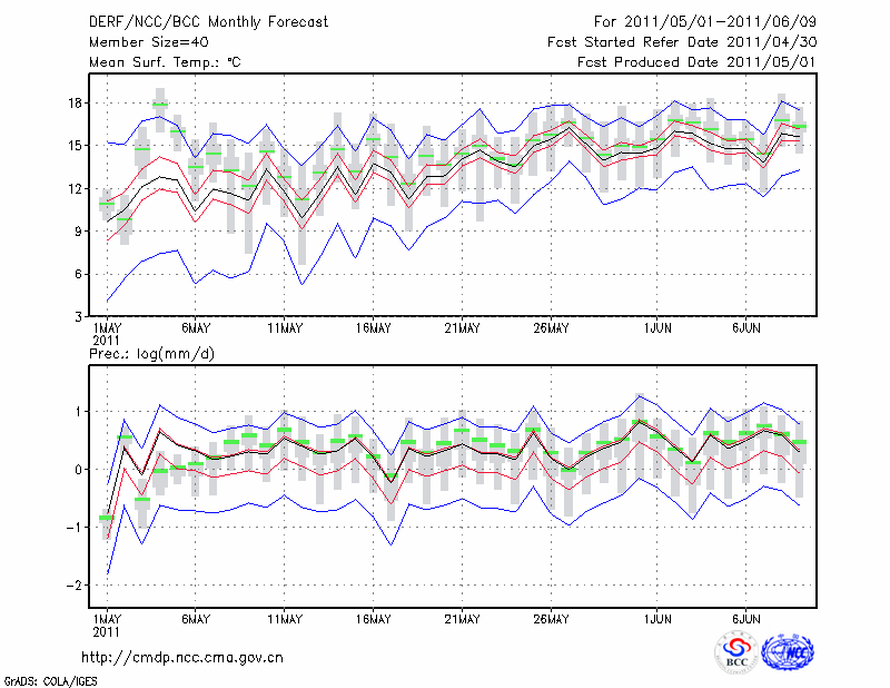 西 宁 (LAT:36.62 LON:101.77) 2011-05-01        预测