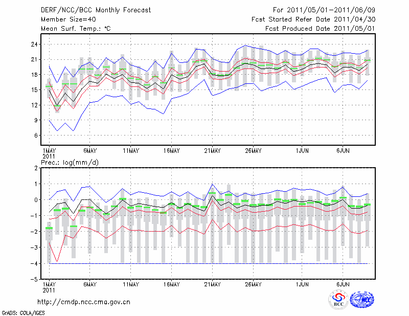 呼和浩特 (LAT:40.82 LON:111.68) 2011-05-01        预测