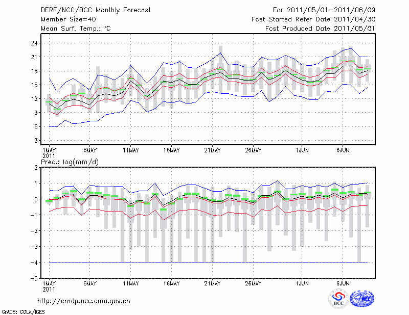 延 吉 (LAT:42.88 LON:129.47) 2011-05-01        预测