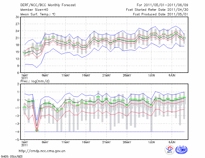 张 家 口 (LAT:40.78 LON:114.88) 2011-05-01        预测