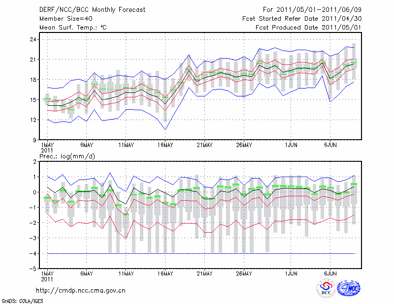 营 口 (LAT:40.67 LON:122.20) 2011-05-01        预测
