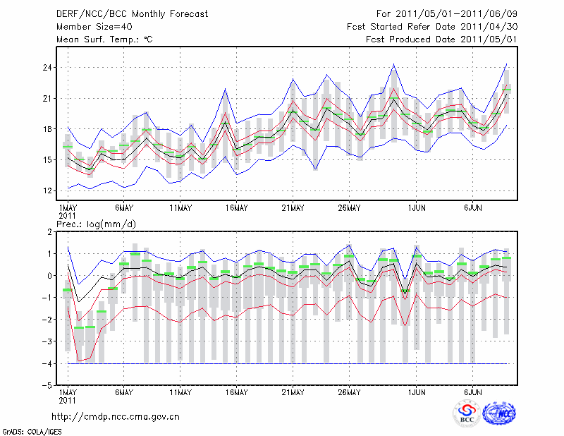 青 岛 (LAT:36.07 LON:120.33) 2011-05-01        预测
