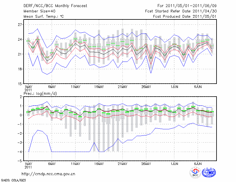 蒙 自 (LAT:23.38 LON:103.38) 2011-05-01        预测