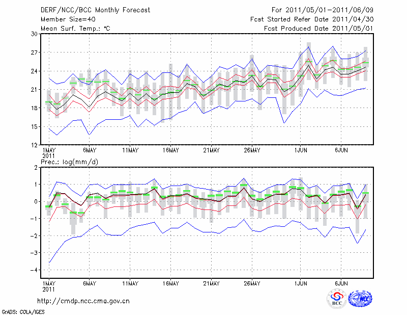 西 安 (LAT:34.30 LON:108.93) 2011-05-01        预测