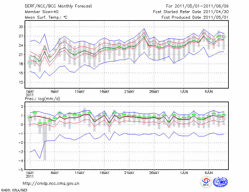 信 阳 (LAT:32.13 LON:114.05) 2011-05-01        预测
