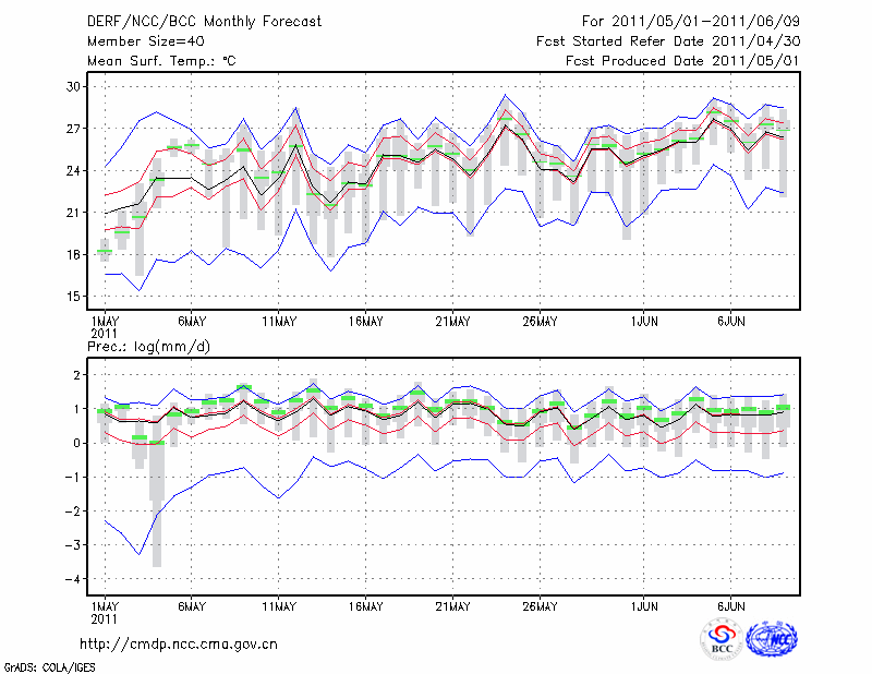 汉 口 (LAT:30.62 LON:114.13) 2011-05-01        预测