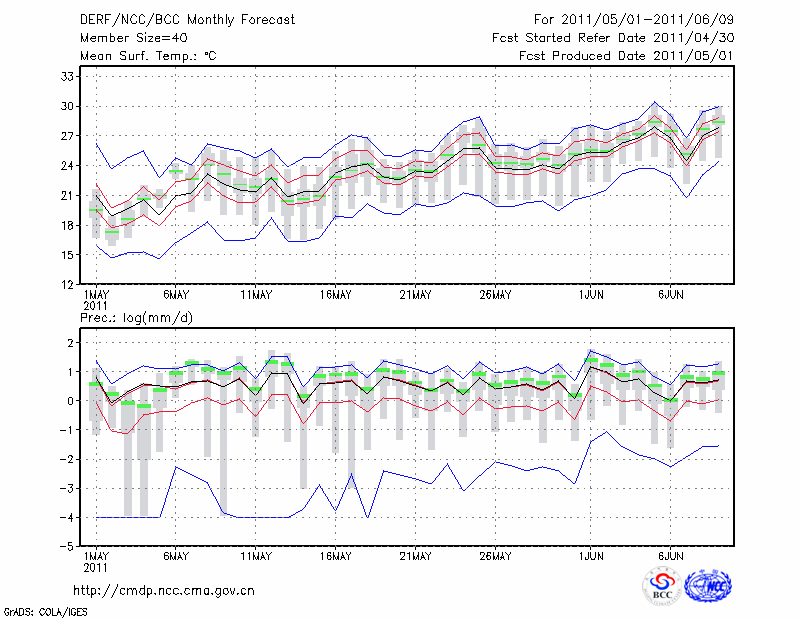 蚌 埠 (LAT:32.95 LON:117.37) 2011-05-01        预测
