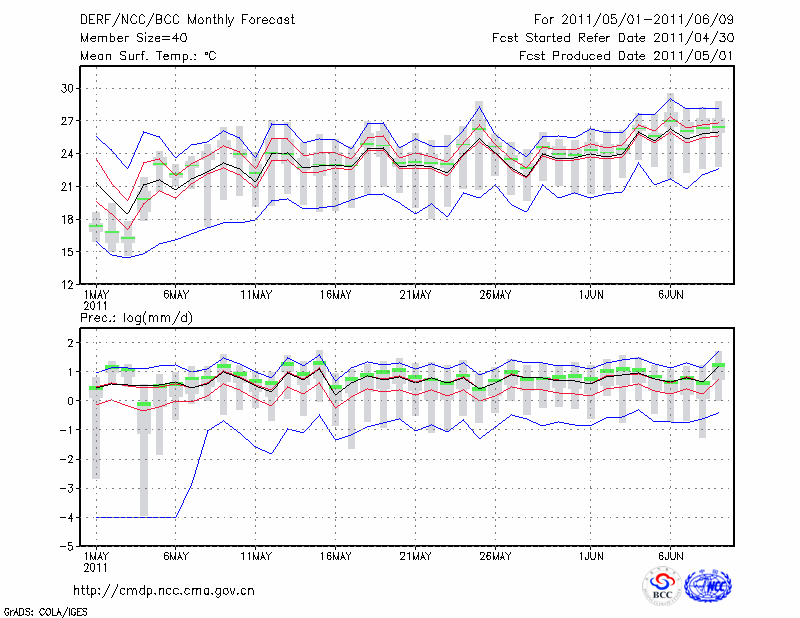 杭 州 (LAT:30.23 LON:120.17) 2011-05-01        预测