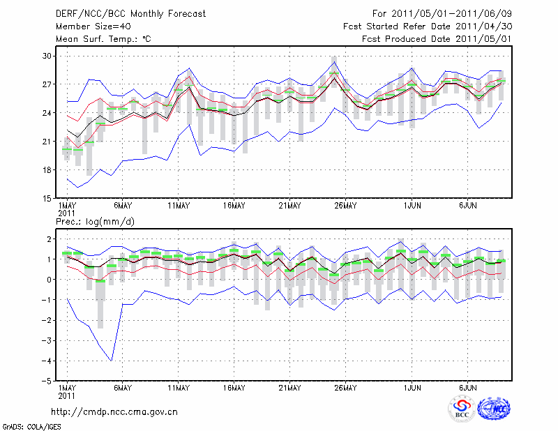 南 昌 (LAT:28.60 LON:115.92) 2011-05-01        预测
