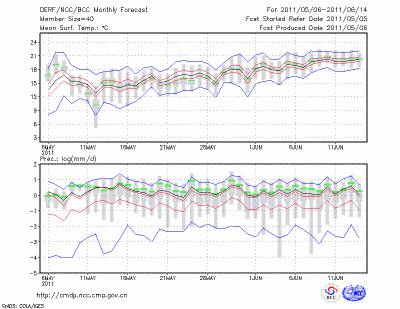 西 峰 镇 (LAT:35.73 LON:107.63) 2011-05-06        预测