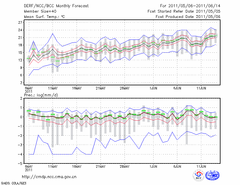 牡 丹 江 (LAT:44.57 LON:129.60) 2011-05-06        预测