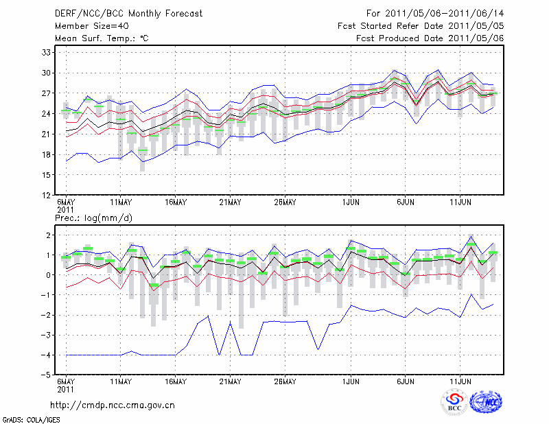 蚌 埠 (LAT:32.95 LON:117.37) 2011-05-06        预测