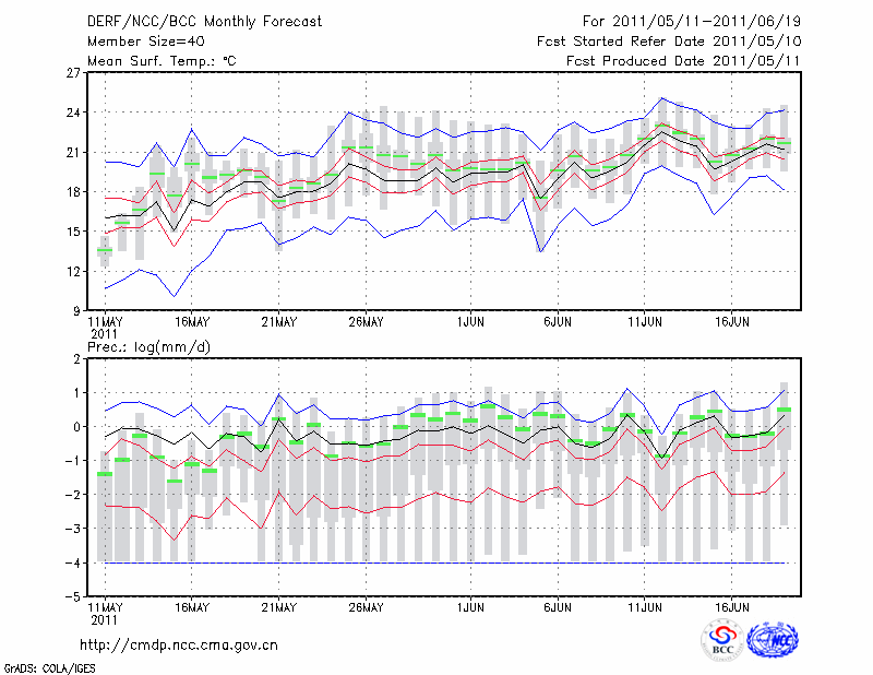 呼和浩特 (LAT:40.82 LON:111.68) 2011-05-11        预测