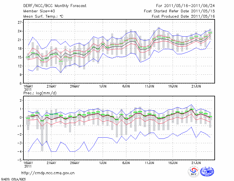 牡 丹 江 (LAT:44.57 LON:129.60) 2011-05-16        预测