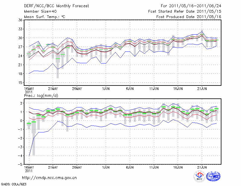岳 阳 (LAT:29.38 LON:113.08) 2011-05-16        预测