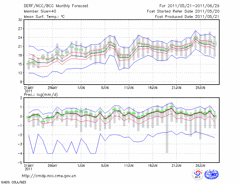 牡 丹 江 (LAT:44.57 LON:129.60) 2011-05-21        预测