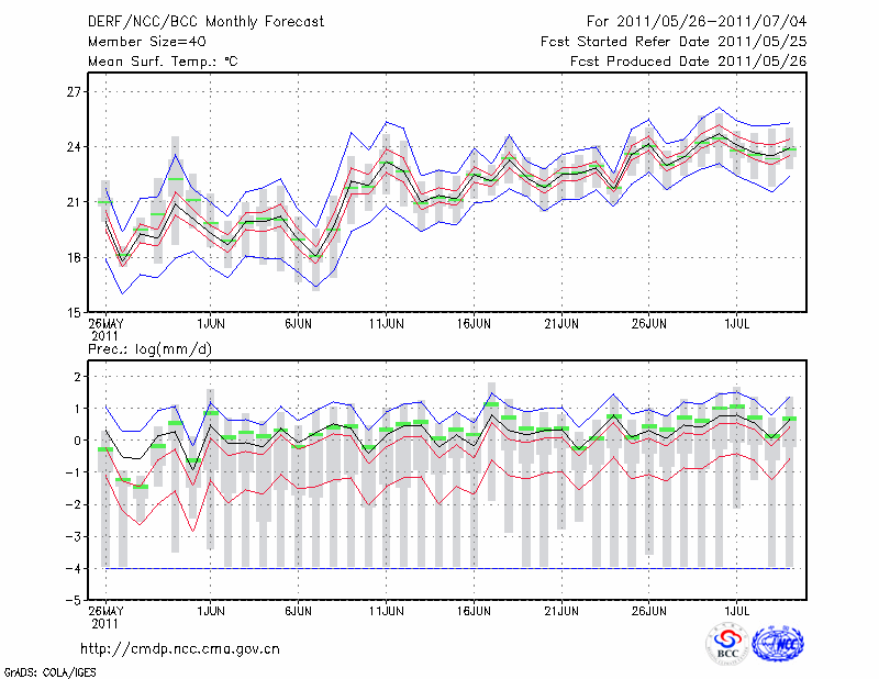 青 岛 (LAT:36.07 LON:120.33) 2011-05-26        预测