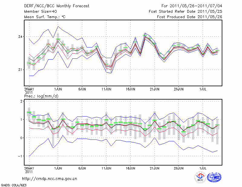 临 沧 (LAT:23.95 LON:100.22) 2011-05-26        预测