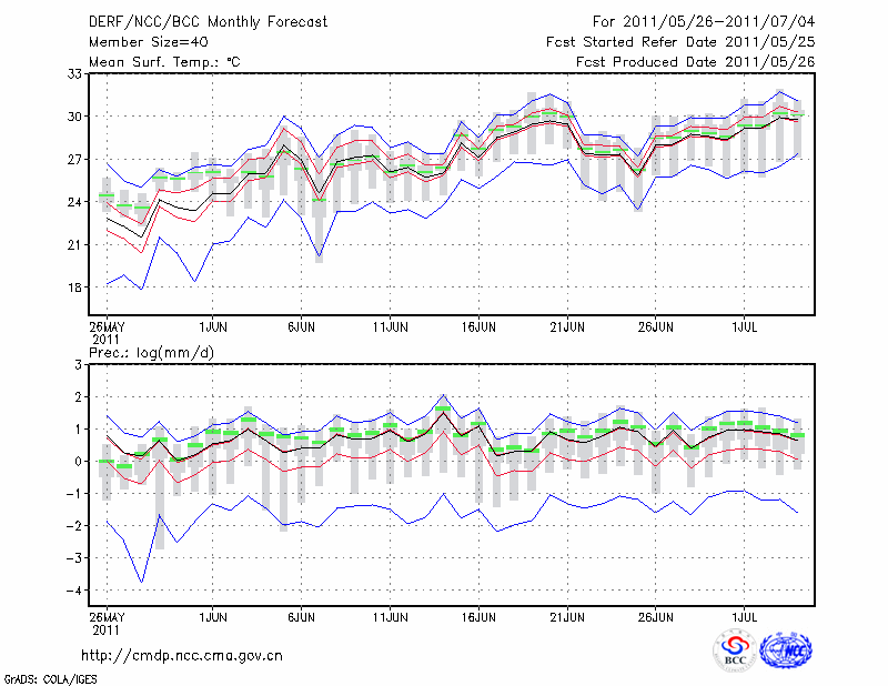 合 肥 (LAT:31.87 LON:117.23) 2011-05-26        预测