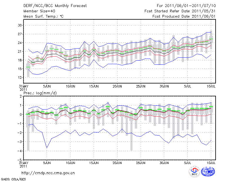 鸡 西 (LAT:45.28 LON:130.95) 2011-06-01        预测