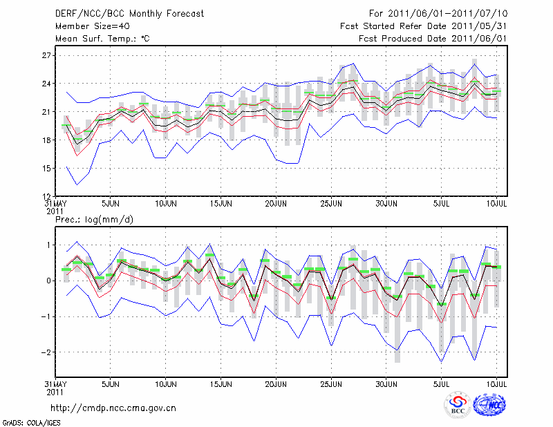 伊 宁 (LAT:43.95 LON:81.33) 2011-06-01        预测