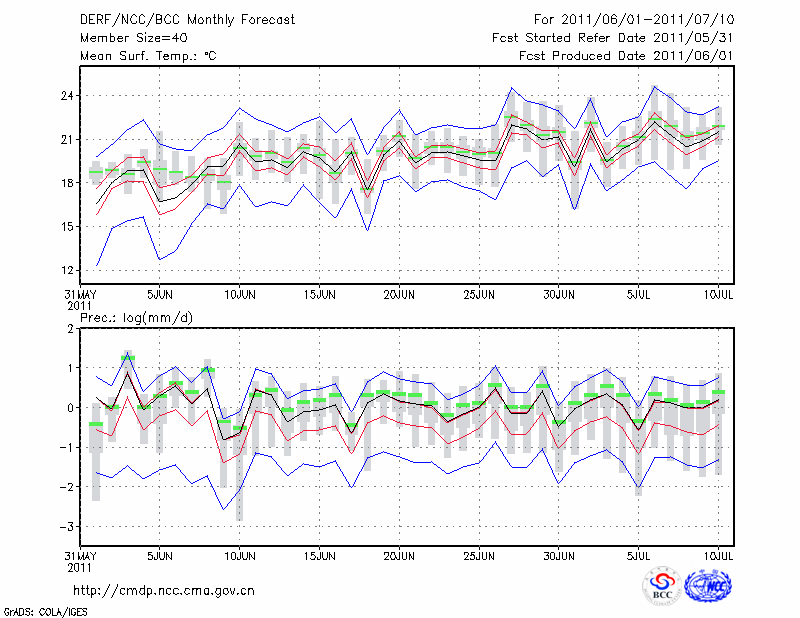 武 威 (LAT:38.05 LON:102.55) 2011-06-01        预测