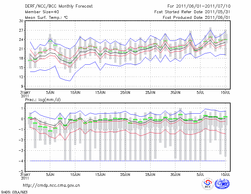 锡林浩特 (LAT:43.95 LON:116.07) 2011-06-01        预测