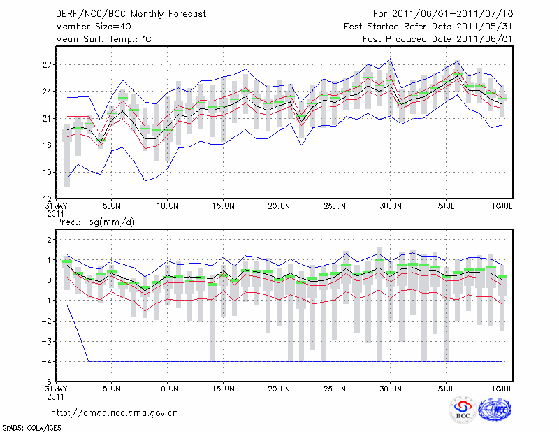 长 春 (LAT:43.90 LON:125.22) 2011-06-01        预测