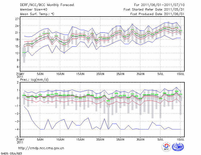 延 吉 (LAT:42.88 LON:129.47) 2011-06-01        预测