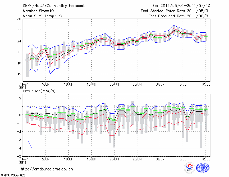 营 口 (LAT:40.67 LON:122.20) 2011-06-01        预测