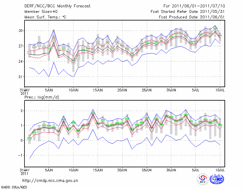 宜 宾 (LAT:28.80 LON:104.60) 2011-06-01        预测