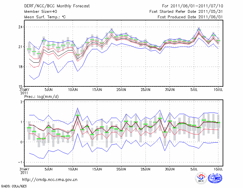 丽 江 (LAT:26.83 LON:100.47) 2011-06-01        预测