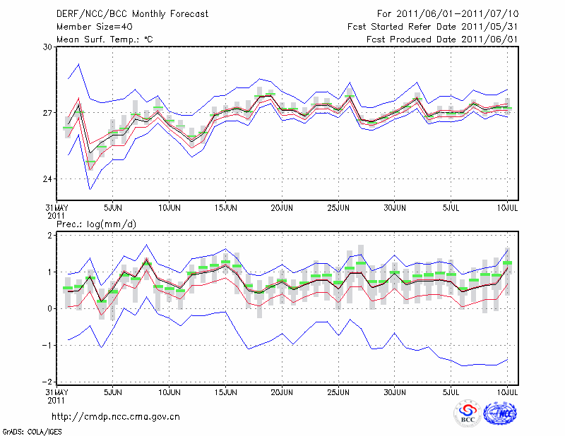 景 洪 (LAT:22.02 LON:100.80) 2011-06-01        预测