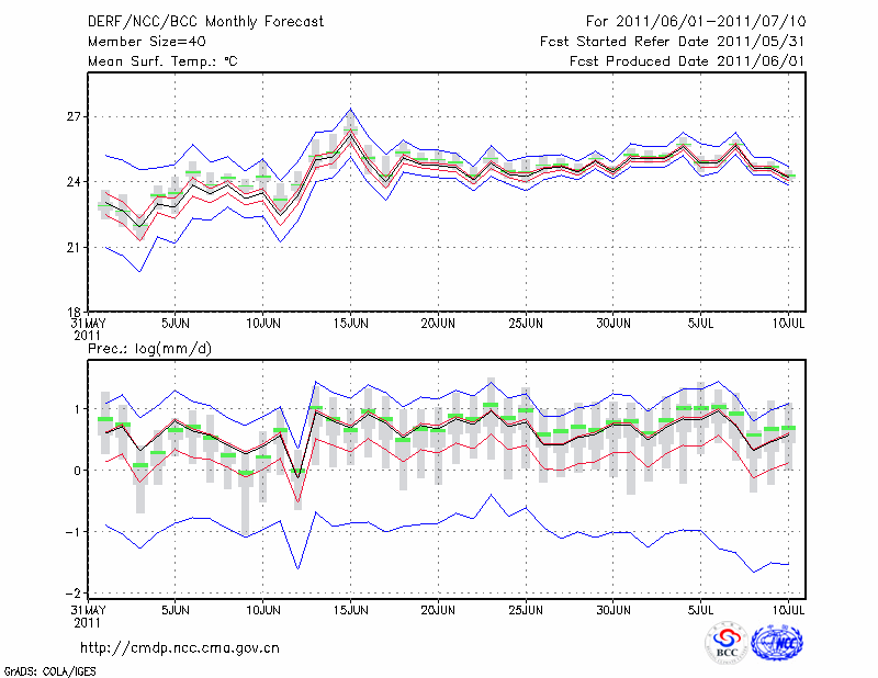 蒙 自 (LAT:23.38 LON:103.38) 2011-06-01        预测