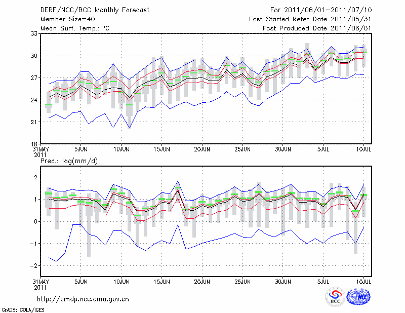 达 县 (LAT:31.20 LON:107.50) 2011-06-01        预测