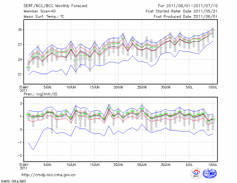 恩 施 (LAT:30.28 LON:109.47) 2011-06-01        预测