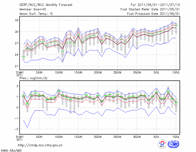 宜 昌 (LAT:30.70 LON:111.30) 2011-06-01        预测