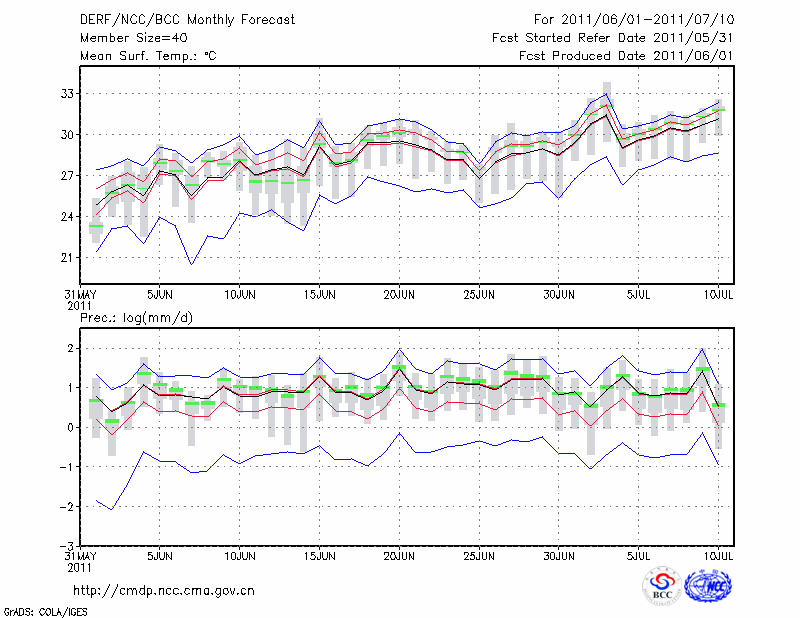 汉 口 (LAT:30.62 LON:114.13) 2011-06-01        预测