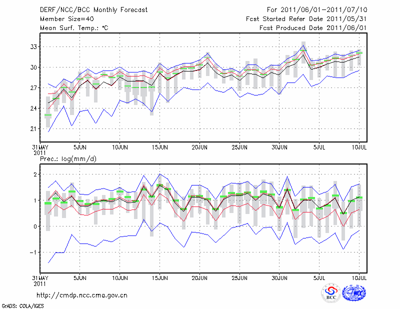 岳 阳 (LAT:29.38 LON:113.08) 2011-06-01        预测