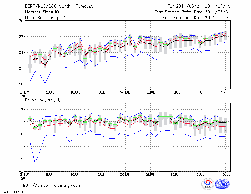 酉 阳 (LAT:28.83 LON:108.77) 2011-06-01        预测