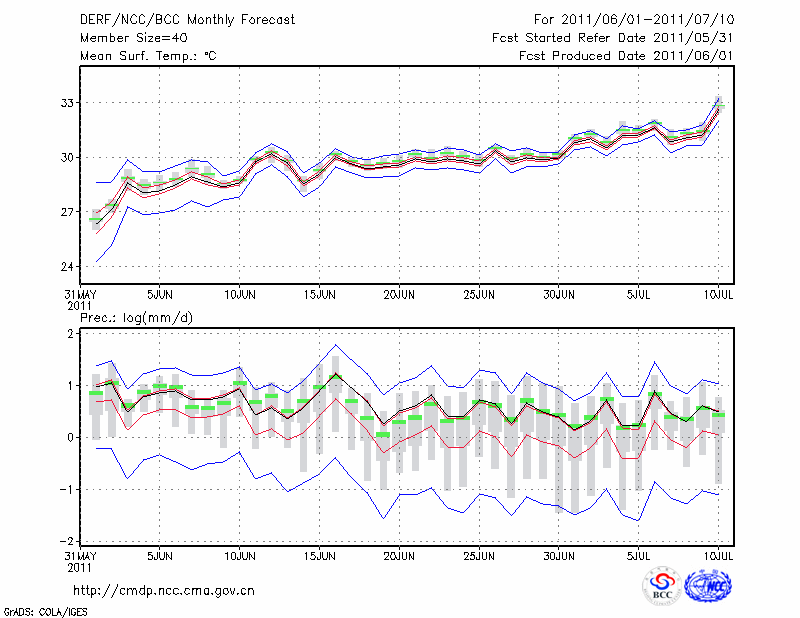 赣 州 (LAT:25.85 LON:114.95) 2011-06-01        预测
