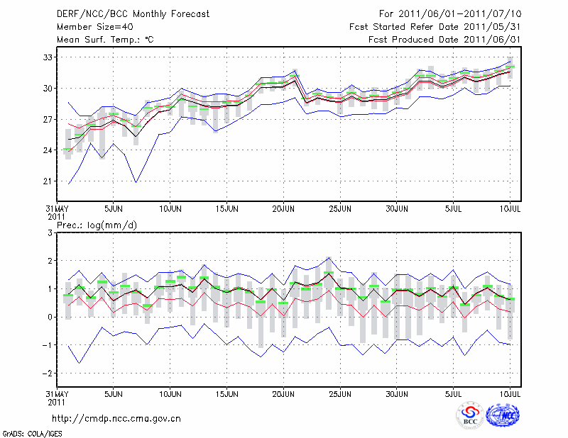 南 昌 (LAT:28.60 LON:115.92) 2011-06-01        预测