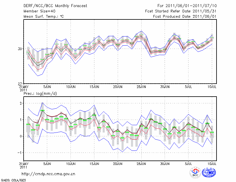 湛 江 (LAT:21.22 LON:110.40) 2011-06-01        预测